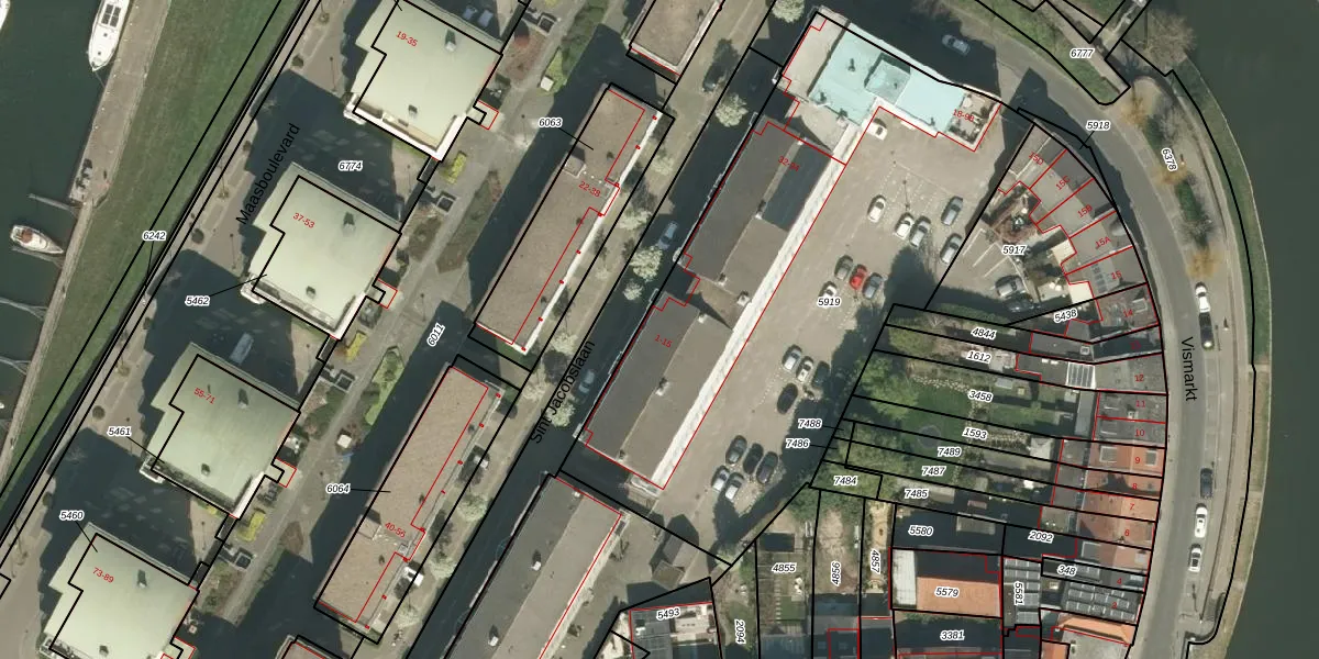 Sint Jacobslaan 9 is gelegen op kadastraal perceel RMD00C5919. Deze kadastrale aanduiding is uniek en wordt gebruikt door het Kadaster om eigendomsrechten en andere zakelijke rechten vast te leggen. Het perceel maakt onderdeel uit van de kadastrale gemeente Roermond.