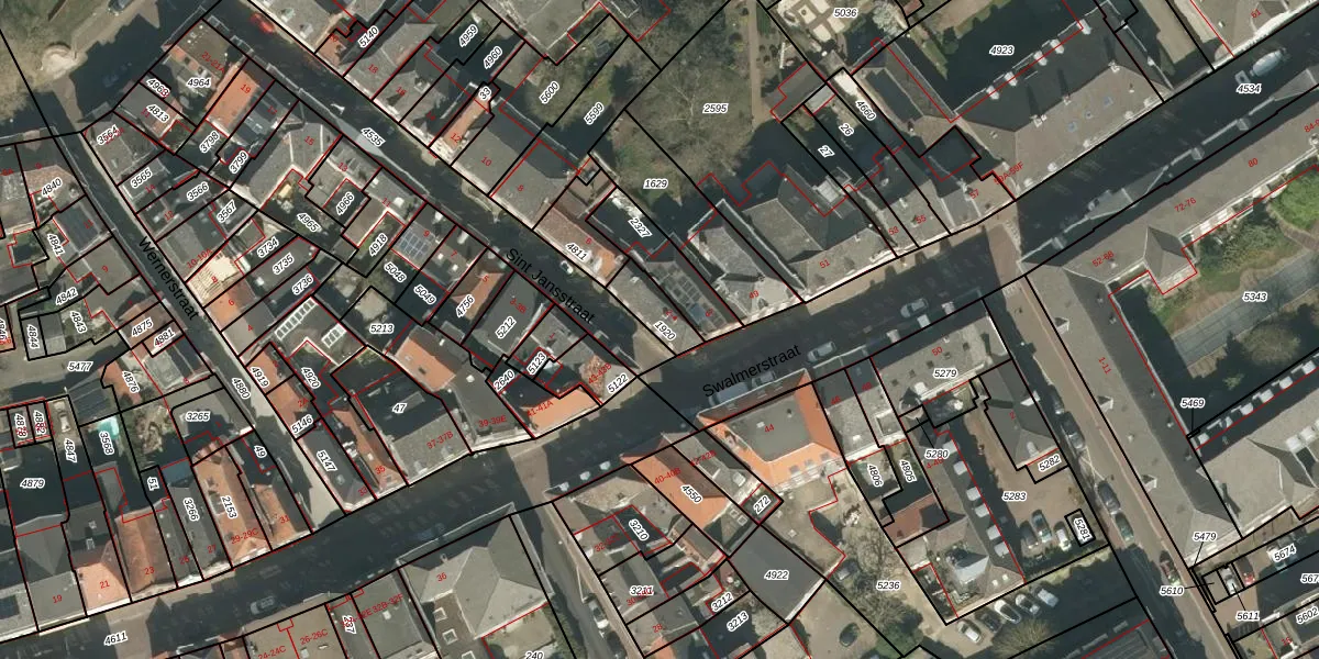 Het perceel waarop Sint Jansstraat 2 staat heeft een oppervlakte van 90 m². Dit is een klein perceel. De perceeloppervlakte wordt geregistreerd door het Kadaster. Gedetailleerde informatie over de maten van dit perceel kunt u vinden in het rapport Kadastrale kaart met maatvoering van Sint Jansstraat 2.