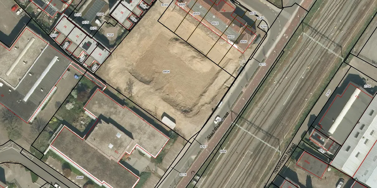 Het perceel waarop Slachthuisstraat 159 staat heeft een oppervlakte van 2791 m². Dit is een zeer groot perceel. De perceeloppervlakte wordt geregistreerd door het Kadaster. Gedetailleerde informatie over de maten van dit perceel kunt u vinden in het rapport Kadastrale kaart met maatvoering van Slachthuisstraat 159.