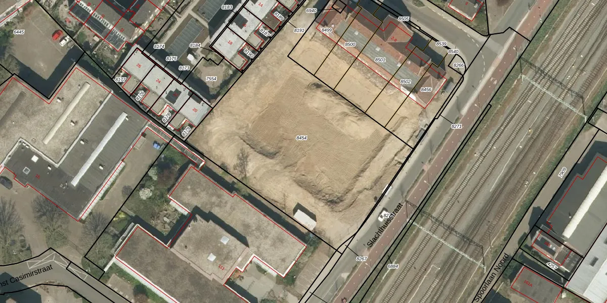 Het perceel waarop Slachthuisstraat 163 staat heeft een oppervlakte van 2791 m². Dit is een zeer groot perceel. De perceeloppervlakte wordt geregistreerd door het Kadaster. Gedetailleerde informatie over de maten van dit perceel kunt u vinden in het rapport Kadastrale kaart met maatvoering van Slachthuisstraat 163.