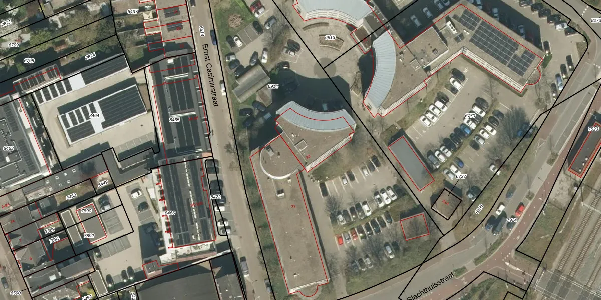 Het perceel waarop Slachthuisstraat 35 staat heeft een oppervlakte van 4785 m². Dit is een zeer groot perceel. De perceeloppervlakte wordt geregistreerd door het Kadaster. Gedetailleerde informatie over de maten van dit perceel kunt u vinden in het rapport Kadastrale kaart met maatvoering van Slachthuisstraat 35.