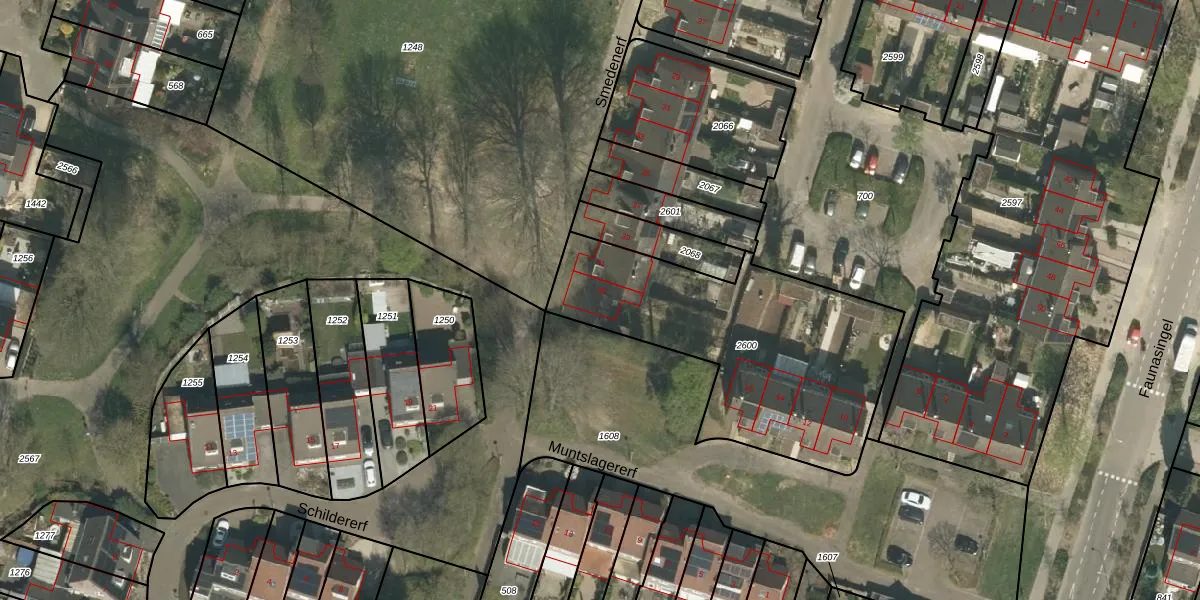 Het perceel waarop Smedenerf 43 staat heeft een oppervlakte van 1215 m². Dit is een zeer groot perceel. De perceeloppervlakte wordt geregistreerd door het Kadaster. Gedetailleerde informatie over de maten van dit perceel kunt u vinden in het rapport Kadastrale kaart met maatvoering van Smedenerf 43.