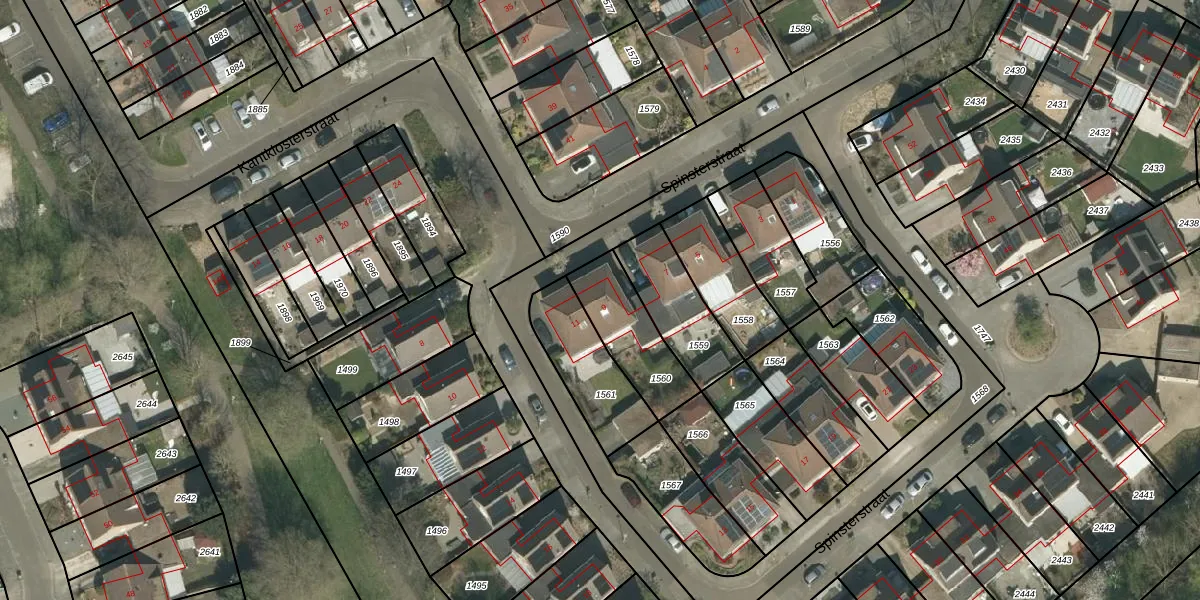 Spinsterstraat 9 is gelegen op kadastraal perceel RMD00H1560. Deze kadastrale aanduiding is uniek en wordt gebruikt door het Kadaster om eigendomsrechten en andere zakelijke rechten vast te leggen. Het perceel maakt onderdeel uit van de kadastrale gemeente Roermond.