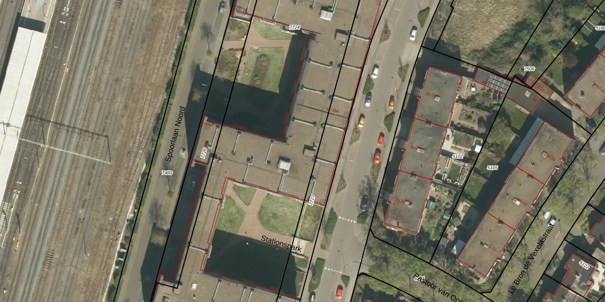 Het perceel waarop Stationspark 109 staat heeft een oppervlakte van 7342 m². Dit is een zeer groot perceel. De perceeloppervlakte wordt geregistreerd door het Kadaster. Gedetailleerde informatie over de maten van dit perceel kunt u vinden in het rapport Kadastrale kaart met maatvoering van Stationspark 109.