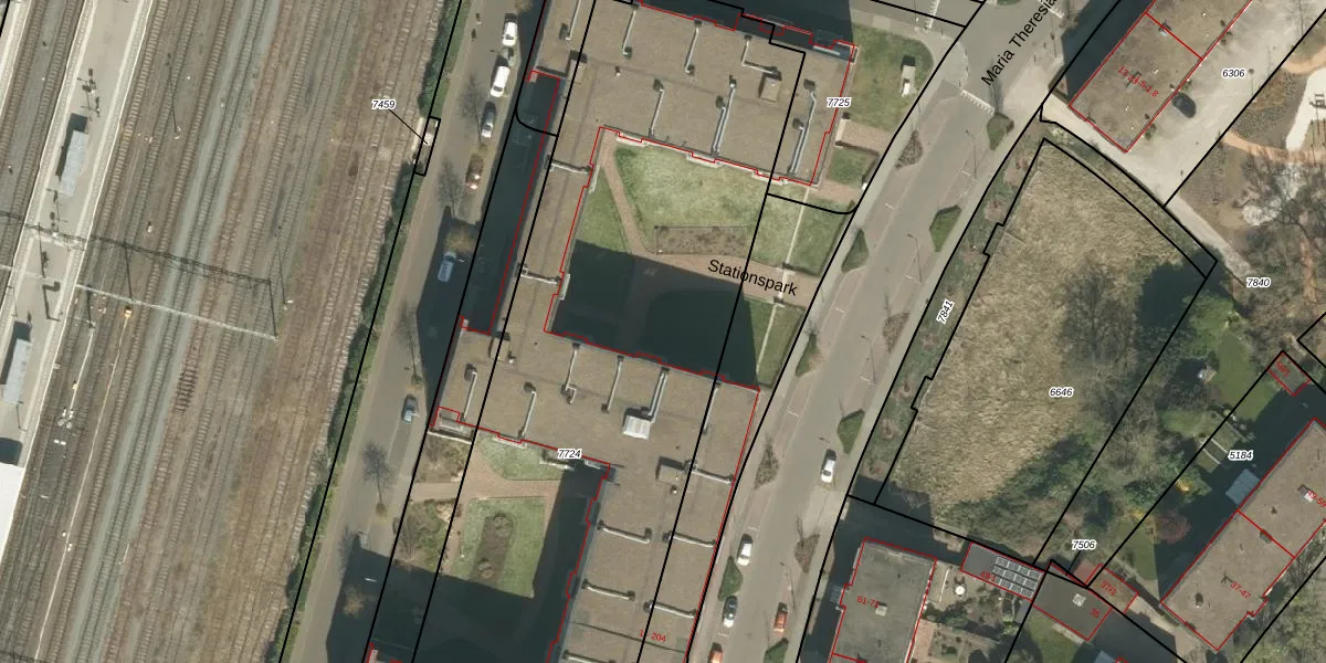 Het perceel waarop Stationspark 132 staat heeft een oppervlakte van 7342 m². Dit is een zeer groot perceel. De perceeloppervlakte wordt geregistreerd door het Kadaster. Gedetailleerde informatie over de maten van dit perceel kunt u vinden in het rapport Kadastrale kaart met maatvoering van Stationspark 132.
