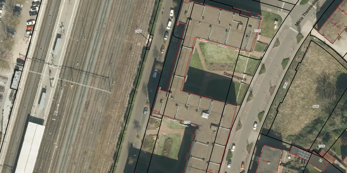 Stationspark 155 is gelegen op kadastraal perceel RMD00B7724. Deze kadastrale aanduiding is uniek en wordt gebruikt door het Kadaster om eigendomsrechten en andere zakelijke rechten vast te leggen. Het perceel maakt onderdeel uit van de kadastrale gemeente Roermond.