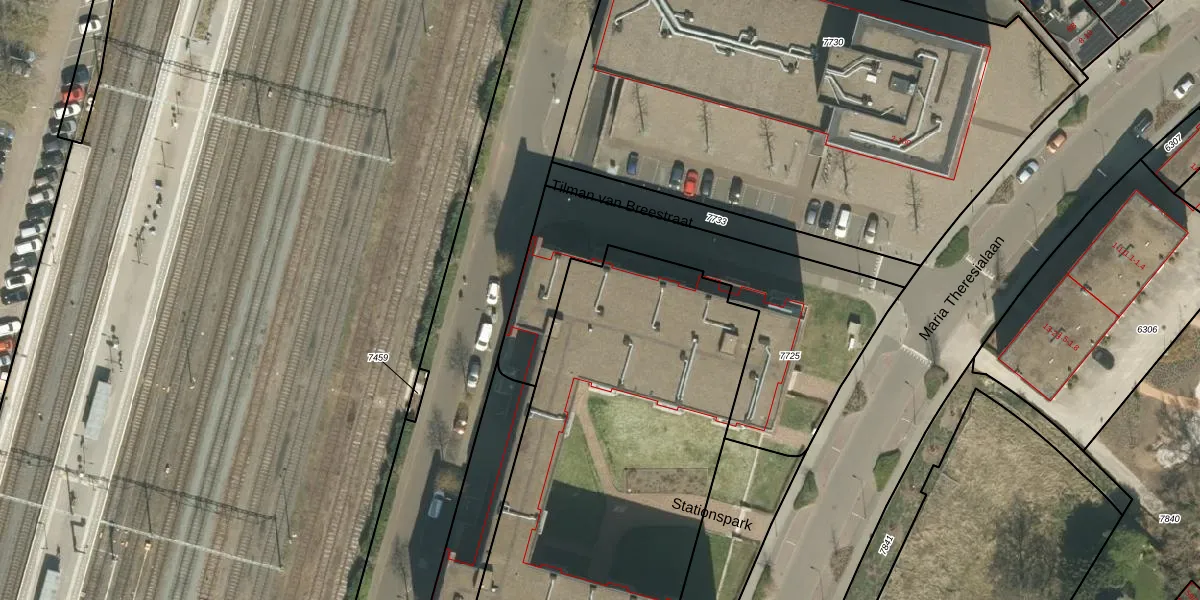 Het perceel waarop Stationspark 189 staat heeft een oppervlakte van 7342 m². Dit is een zeer groot perceel. De perceeloppervlakte wordt geregistreerd door het Kadaster. Gedetailleerde informatie over de maten van dit perceel kunt u vinden in het rapport Kadastrale kaart met maatvoering van Stationspark 189.