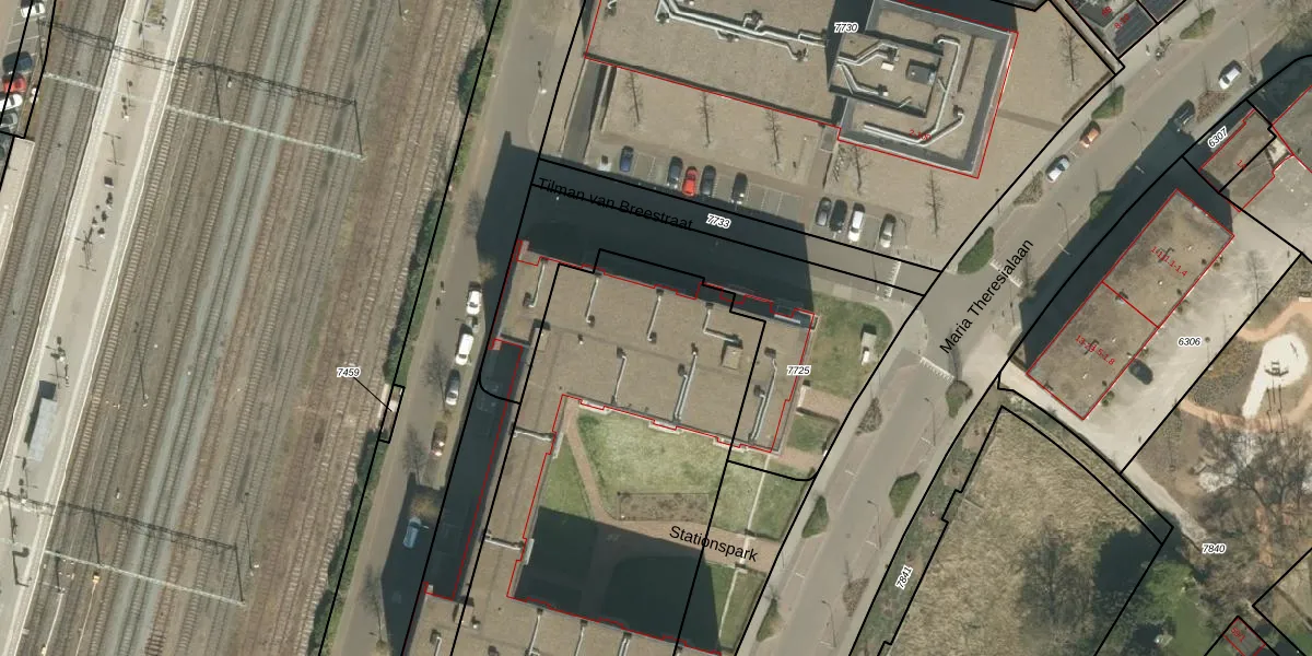 Het perceel waarop Stationspark 190 staat heeft een oppervlakte van 7342 m². Dit is een zeer groot perceel. De perceeloppervlakte wordt geregistreerd door het Kadaster. Gedetailleerde informatie over de maten van dit perceel kunt u vinden in het rapport Kadastrale kaart met maatvoering van Stationspark 190.