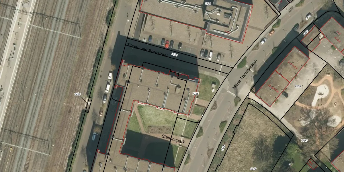 Het perceel waarop Stationspark 191 staat heeft een oppervlakte van 7342 m². Dit is een zeer groot perceel. De perceeloppervlakte wordt geregistreerd door het Kadaster. Gedetailleerde informatie over de maten van dit perceel kunt u vinden in het rapport Kadastrale kaart met maatvoering van Stationspark 191.