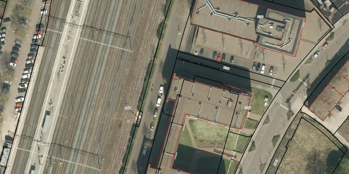 Het perceel waarop Stationspark 197 staat heeft een oppervlakte van 1048 m². Dit is een zeer groot perceel. De perceeloppervlakte wordt geregistreerd door het Kadaster. Gedetailleerde informatie over de maten van dit perceel kunt u vinden in het rapport Kadastrale kaart met maatvoering van Stationspark 197.