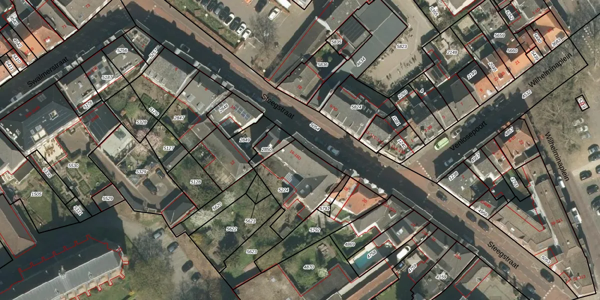 Steegstraat 16 is gelegen op kadastraal perceel RMD00D5224. Deze kadastrale aanduiding is uniek en wordt gebruikt door het Kadaster om eigendomsrechten en andere zakelijke rechten vast te leggen. Het perceel maakt onderdeel uit van de kadastrale gemeente Roermond.