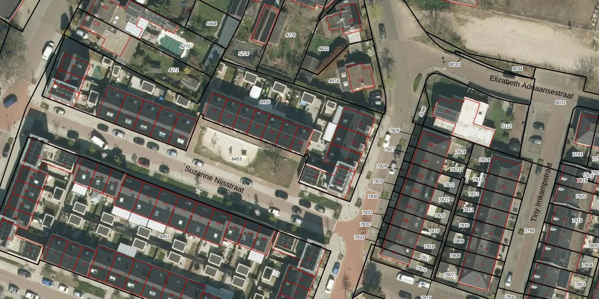 Het perceel waarop Suzanne Nijsstraat 24 staat heeft een oppervlakte van 2380 m². Dit is een zeer groot perceel. De perceeloppervlakte wordt geregistreerd door het Kadaster. Gedetailleerde informatie over de maten van dit perceel kunt u vinden in het rapport Kadastrale kaart met maatvoering van Suzanne Nijsstraat 24.