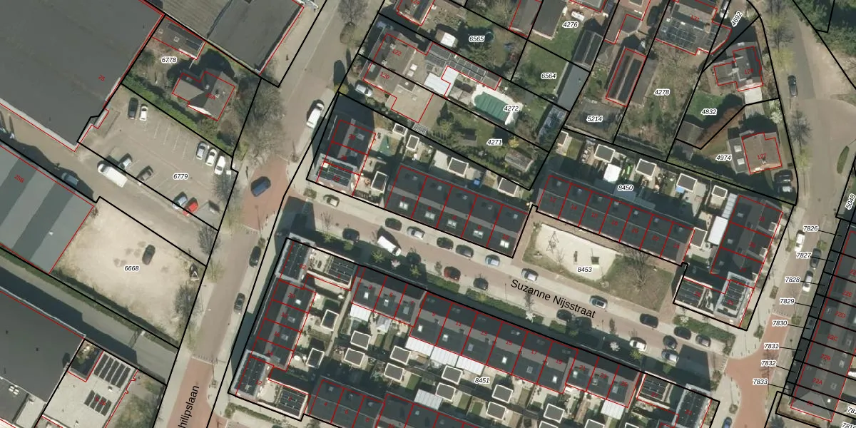 Het perceel waarop Suzanne Nijsstraat 4 staat heeft een oppervlakte van 2380 m². Dit is een zeer groot perceel. De perceeloppervlakte wordt geregistreerd door het Kadaster. Gedetailleerde informatie over de maten van dit perceel kunt u vinden in het rapport Kadastrale kaart met maatvoering van Suzanne Nijsstraat 4.