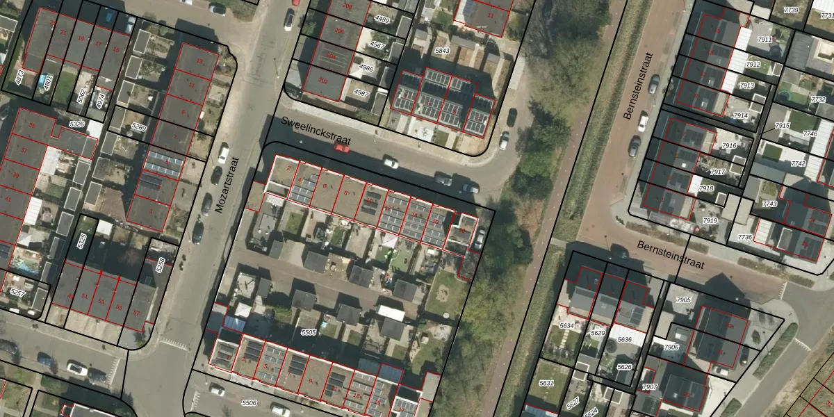 Het perceel waarop Sweelinckstraat 14 staat heeft een oppervlakte van 3360 m². Dit is een zeer groot perceel. De perceeloppervlakte wordt geregistreerd door het Kadaster. Gedetailleerde informatie over de maten van dit perceel kunt u vinden in het rapport Kadastrale kaart met maatvoering van Sweelinckstraat 14.