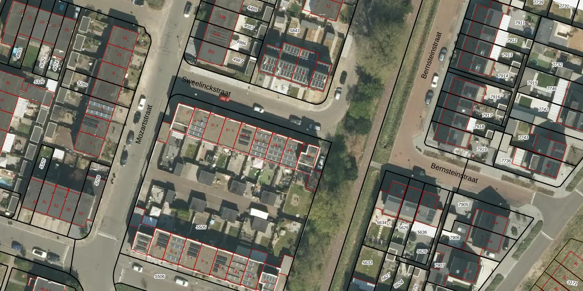 Het perceel waarop Sweelinckstraat 16 staat heeft een oppervlakte van 3360 m². Dit is een zeer groot perceel. De perceeloppervlakte wordt geregistreerd door het Kadaster. Gedetailleerde informatie over de maten van dit perceel kunt u vinden in het rapport Kadastrale kaart met maatvoering van Sweelinckstraat 16.
