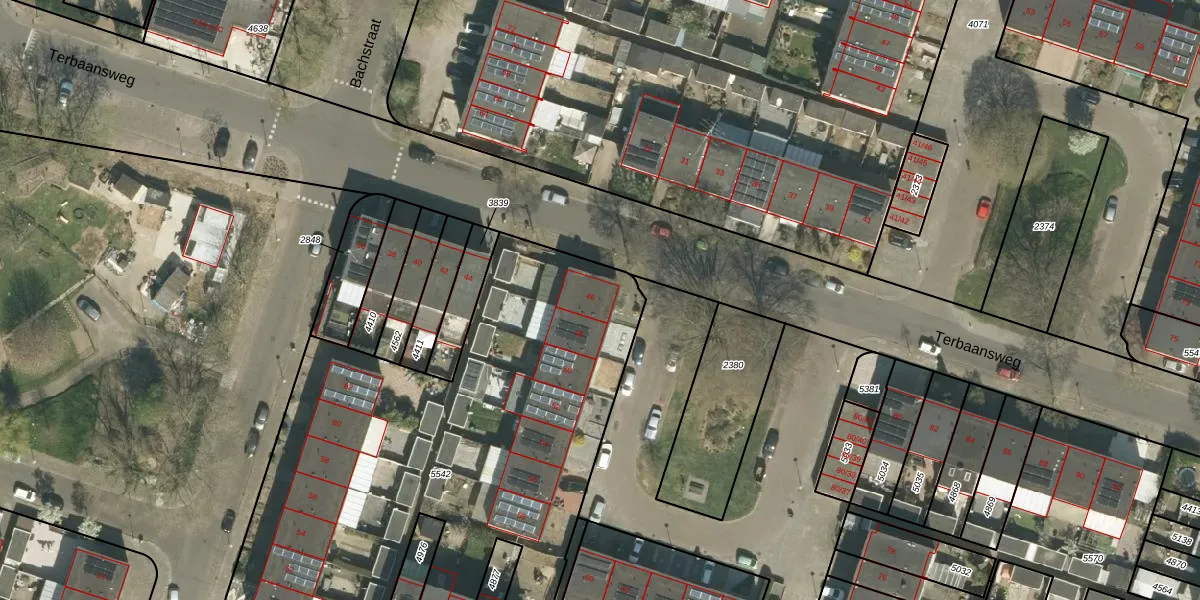 Het perceel waarop Terbaansweg 46 staat heeft een oppervlakte van 3058 m². Dit is een zeer groot perceel. De perceeloppervlakte wordt geregistreerd door het Kadaster. Gedetailleerde informatie over de maten van dit perceel kunt u vinden in het rapport Kadastrale kaart met maatvoering van Terbaansweg 46.