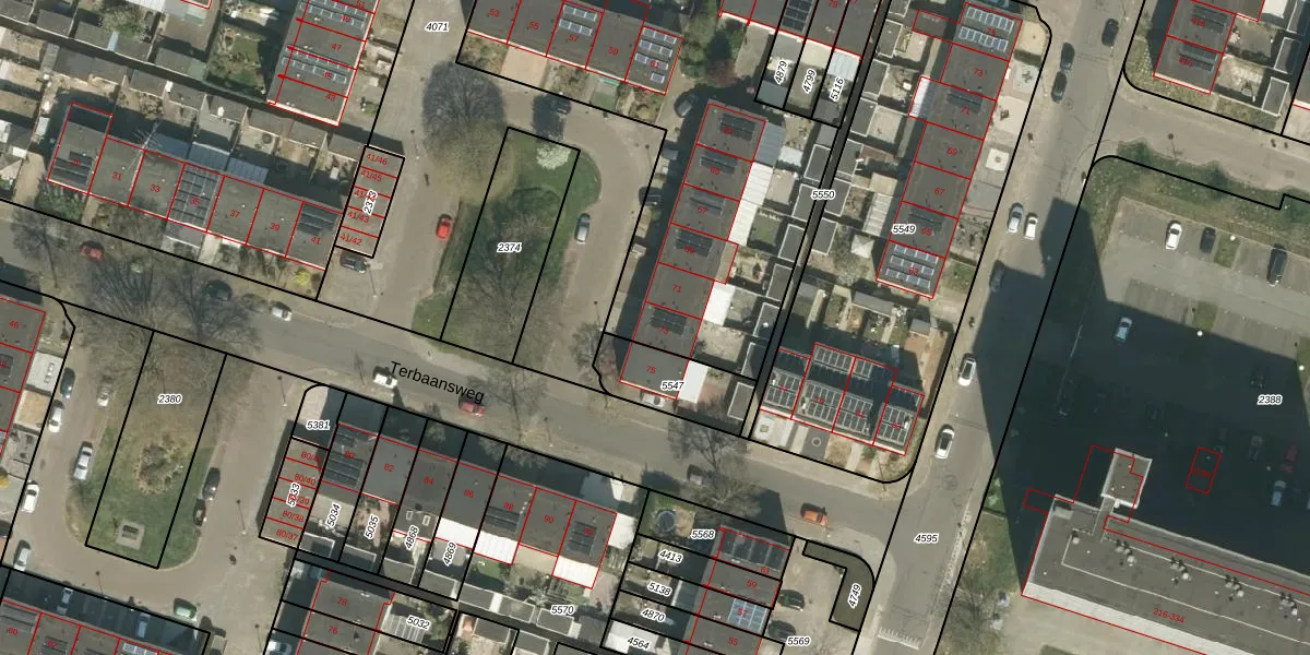 Terbaansweg 73 is gelegen op kadastraal perceel RMD00F5548. Deze kadastrale aanduiding is uniek en wordt gebruikt door het Kadaster om eigendomsrechten en andere zakelijke rechten vast te leggen. Het perceel maakt onderdeel uit van de kadastrale gemeente Roermond.