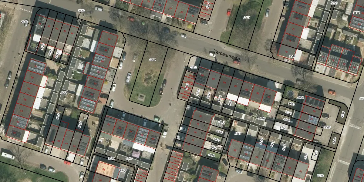 Terbaansweg 80-38 is gelegen op kadastraal perceel RMD00F5033. Deze kadastrale aanduiding is uniek en wordt gebruikt door het Kadaster om eigendomsrechten en andere zakelijke rechten vast te leggen. Het perceel maakt onderdeel uit van de kadastrale gemeente Roermond.
