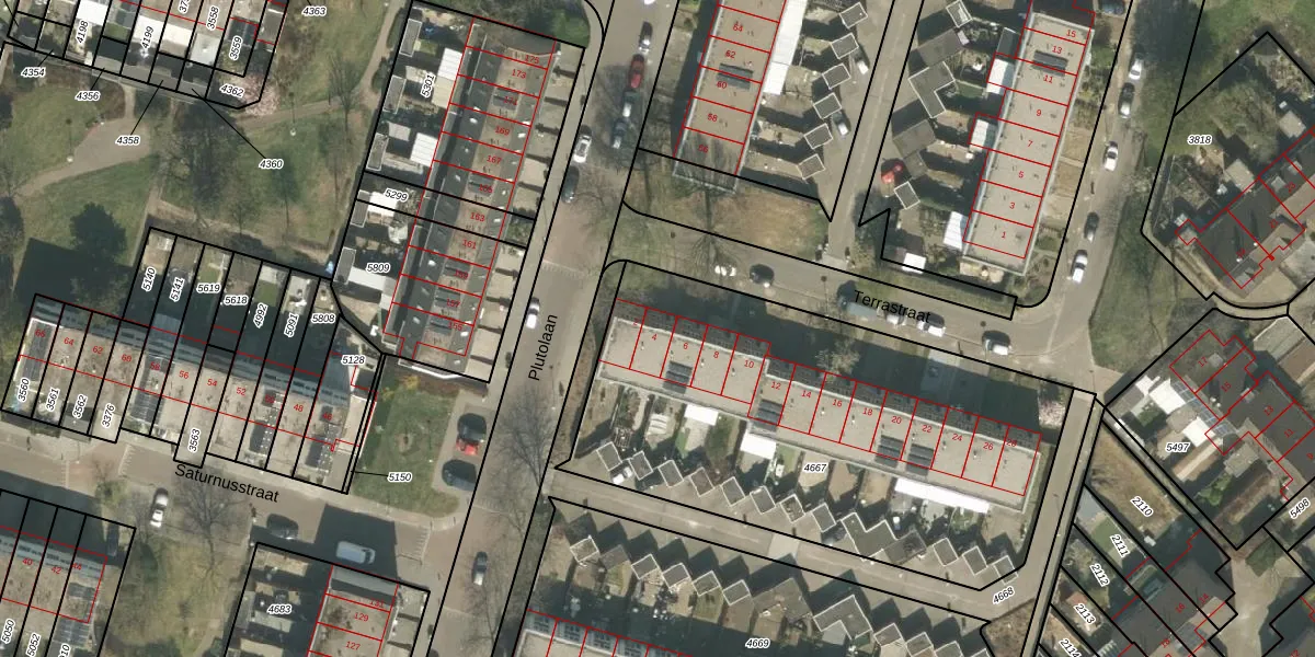 Terrastraat 4 is gelegen op kadastraal perceel RMD00F4667. Deze kadastrale aanduiding is uniek en wordt gebruikt door het Kadaster om eigendomsrechten en andere zakelijke rechten vast te leggen. Het perceel maakt onderdeel uit van de kadastrale gemeente Roermond.