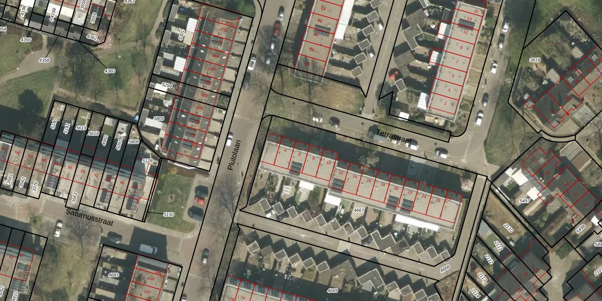 Terrastraat 6 is gelegen op kadastraal perceel RMD00F4667. Deze kadastrale aanduiding is uniek en wordt gebruikt door het Kadaster om eigendomsrechten en andere zakelijke rechten vast te leggen. Het perceel maakt onderdeel uit van de kadastrale gemeente Roermond.