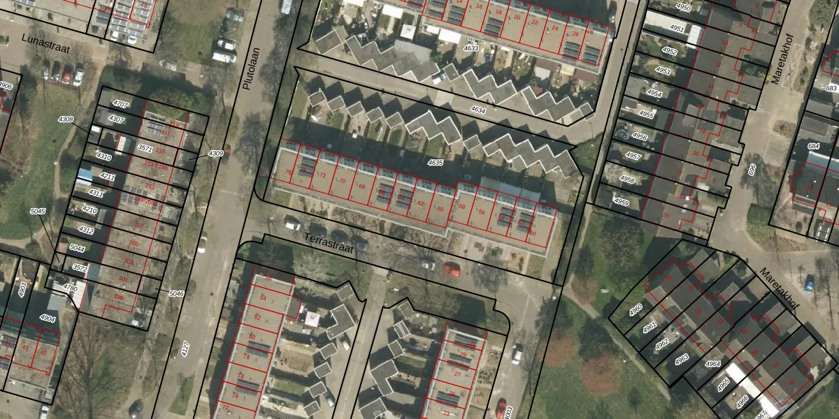 Terrastraat 62 is gelegen op kadastraal perceel RMD00F4635. Deze kadastrale aanduiding is uniek en wordt gebruikt door het Kadaster om eigendomsrechten en andere zakelijke rechten vast te leggen. Het perceel maakt onderdeel uit van de kadastrale gemeente Roermond.