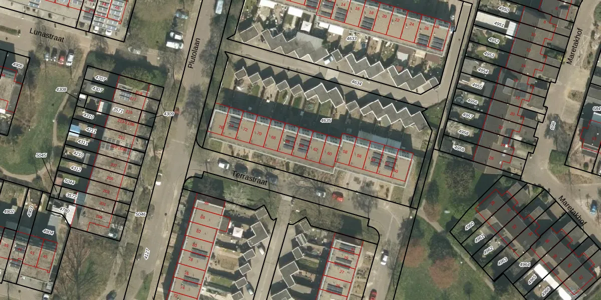 Terrastraat 64 is gelegen op kadastraal perceel RMD00F4635. Deze kadastrale aanduiding is uniek en wordt gebruikt door het Kadaster om eigendomsrechten en andere zakelijke rechten vast te leggen. Het perceel maakt onderdeel uit van de kadastrale gemeente Roermond.