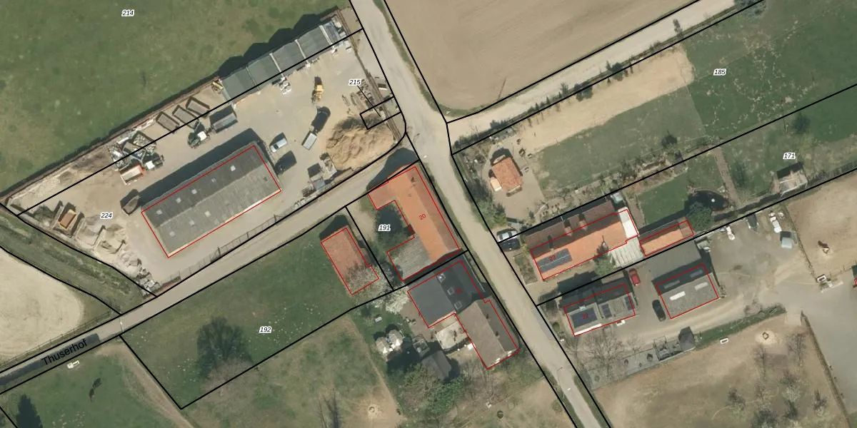 Thuserhof 20 is gelegen op kadastraal perceel RMD00O191. Deze kadastrale aanduiding is uniek en wordt gebruikt door het Kadaster om eigendomsrechten en andere zakelijke rechten vast te leggen. Het perceel maakt onderdeel uit van de kadastrale gemeente Roermond.