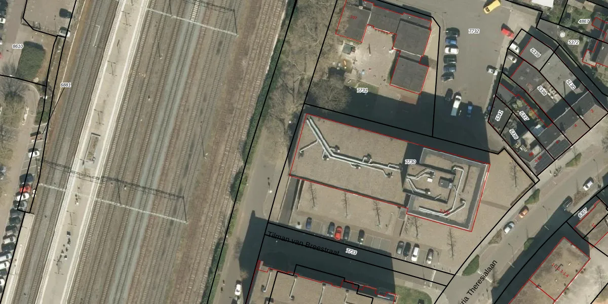 Het perceel waarop Tilman van Breestraat 30 staat heeft een oppervlakte van 3006 m². Dit is een zeer groot perceel. De perceeloppervlakte wordt geregistreerd door het Kadaster. Gedetailleerde informatie over de maten van dit perceel kunt u vinden in het rapport Kadastrale kaart met maatvoering van Tilman van Breestraat 30.