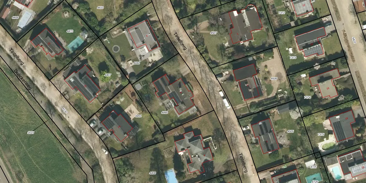 Het perceel waarop Tintelberg 6 staat heeft een oppervlakte van 1075 m². Dit is een zeer groot perceel. De perceeloppervlakte wordt geregistreerd door het Kadaster. Gedetailleerde informatie over de maten van dit perceel kunt u vinden in het rapport Kadastrale kaart met maatvoering van Tintelberg 6.