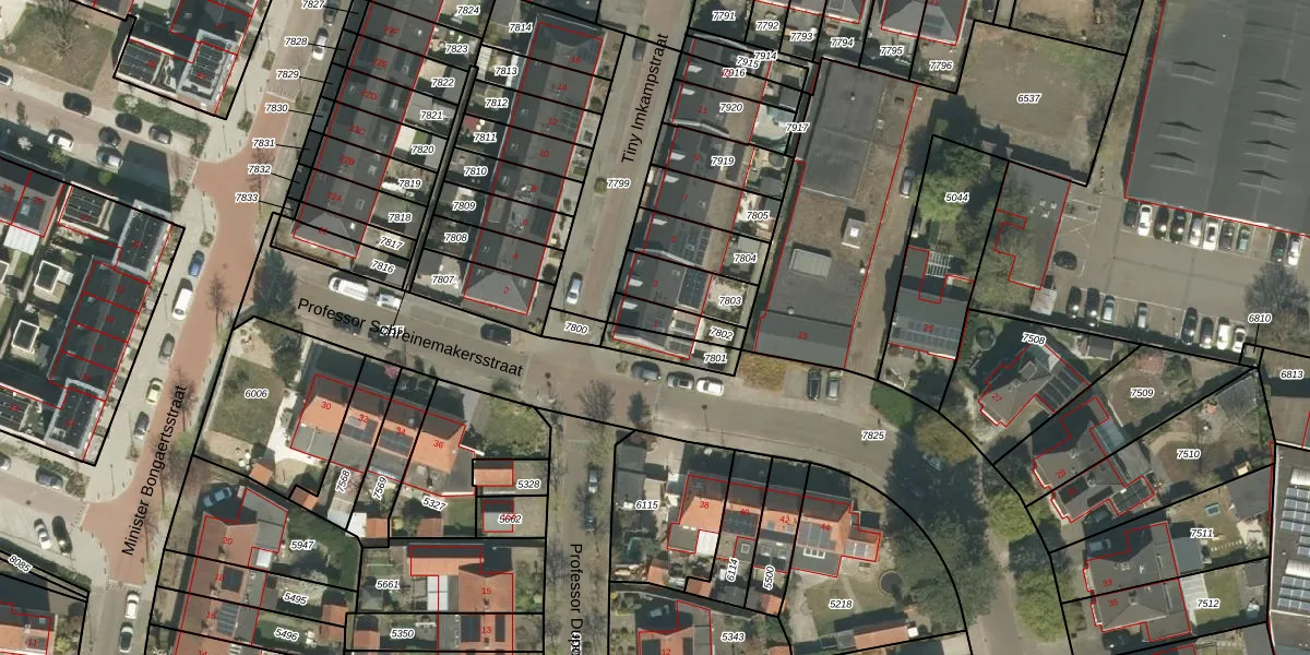 Gebruik de zoekbalk of klik op een perceel voor informatie over de adressen binnen dit perceel.
