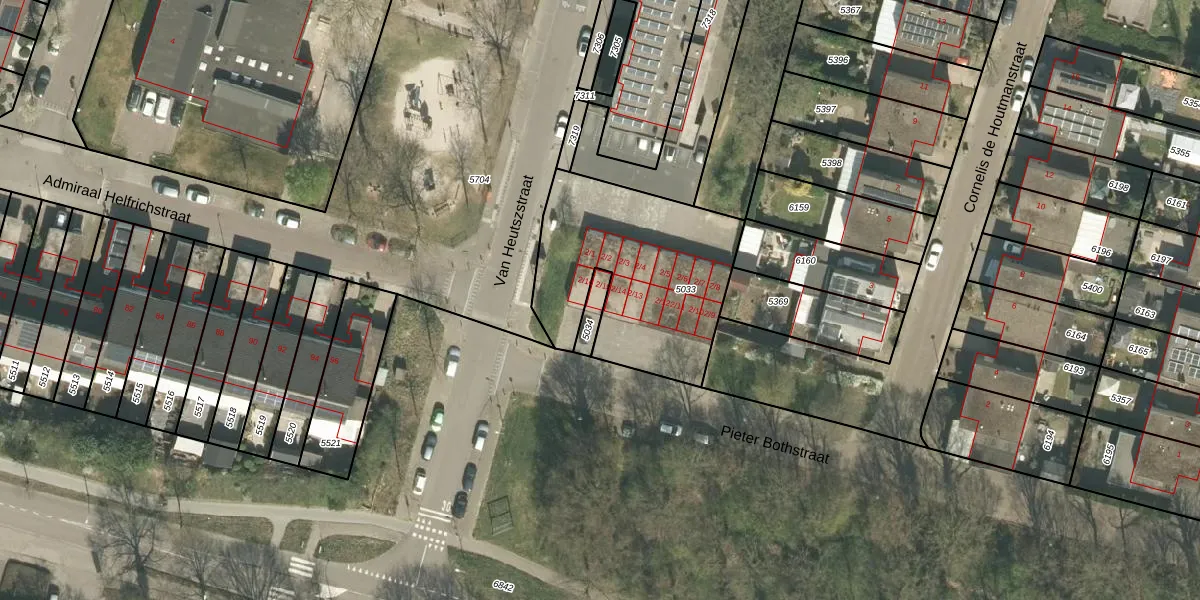 Het perceel waarop Van Heutszstraat 2-15 staat heeft een oppervlakte van 45 m². Dit is een klein perceel. De perceeloppervlakte wordt geregistreerd door het Kadaster. Gedetailleerde informatie over de maten van dit perceel kunt u vinden in het rapport Kadastrale kaart met maatvoering van Van Heutszstraat 2-15.