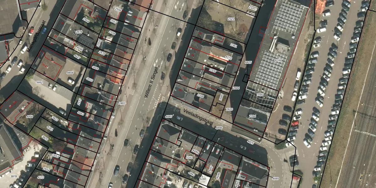 Veeladingstraat 1-B is gelegen op kadastraal perceel RMD00B2338. Deze kadastrale aanduiding is uniek en wordt gebruikt door het Kadaster om eigendomsrechten en andere zakelijke rechten vast te leggen. Het perceel maakt onderdeel uit van de kadastrale gemeente Roermond.