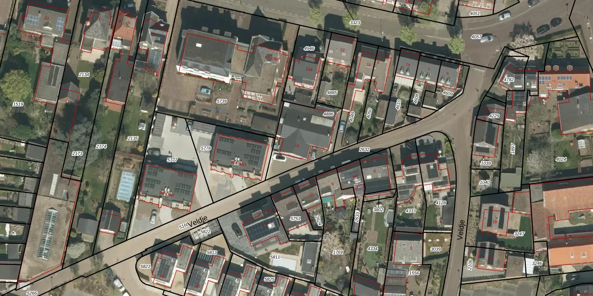 Veldje 13 is gelegen op kadastraal perceel RMD00F4886. Deze kadastrale aanduiding is uniek en wordt gebruikt door het Kadaster om eigendomsrechten en andere zakelijke rechten vast te leggen. Het perceel maakt onderdeel uit van de kadastrale gemeente Roermond.