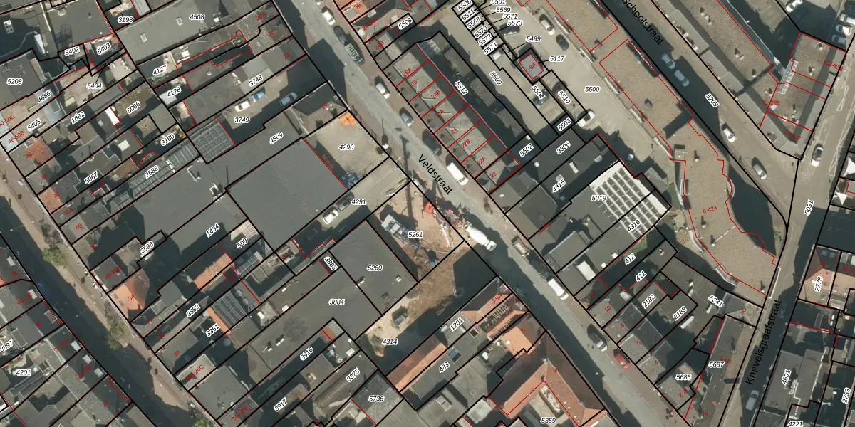 Veldstraat 13-B is gelegen op kadastraal perceel RMD00D5261. Deze kadastrale aanduiding is uniek en wordt gebruikt door het Kadaster om eigendomsrechten en andere zakelijke rechten vast te leggen. Het perceel maakt onderdeel uit van de kadastrale gemeente Roermond.