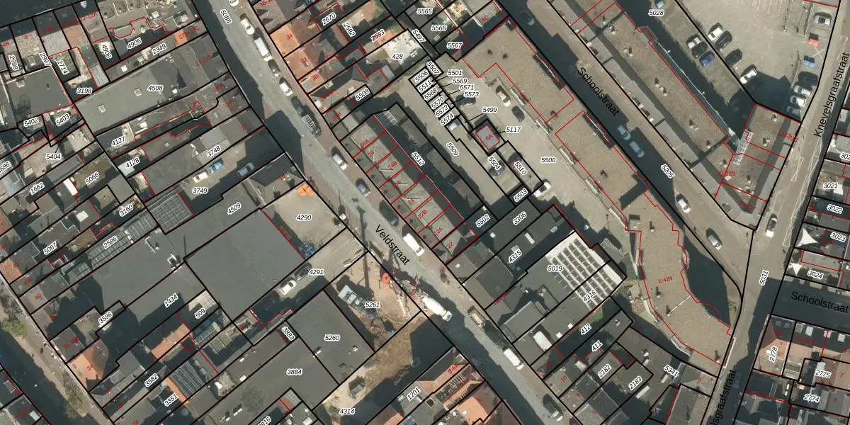 Veldstraat 22-B is gelegen op kadastraal perceel RMD00D5512. Deze kadastrale aanduiding is uniek en wordt gebruikt door het Kadaster om eigendomsrechten en andere zakelijke rechten vast te leggen. Het perceel maakt onderdeel uit van de kadastrale gemeente Roermond.