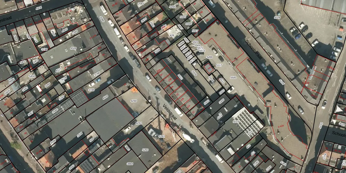 Veldstraat 24-A is gelegen op kadastraal perceel RMD00D5512. Deze kadastrale aanduiding is uniek en wordt gebruikt door het Kadaster om eigendomsrechten en andere zakelijke rechten vast te leggen. Het perceel maakt onderdeel uit van de kadastrale gemeente Roermond.