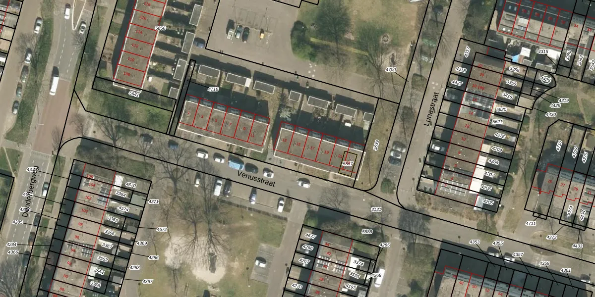 Venusstraat 15 is gelegen op kadastraal perceel RMD00F5856. Deze kadastrale aanduiding is uniek en wordt gebruikt door het Kadaster om eigendomsrechten en andere zakelijke rechten vast te leggen. Het perceel maakt onderdeel uit van de kadastrale gemeente Roermond.