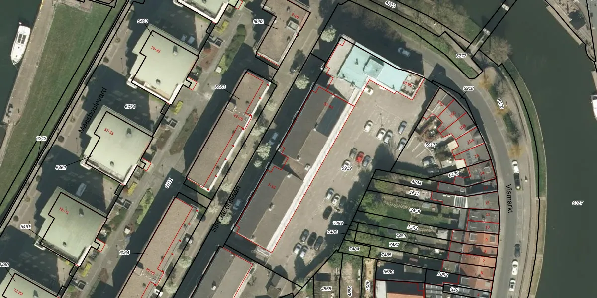 Vismarkt 38 is gelegen op kadastraal perceel RMD00C5919. Deze kadastrale aanduiding is uniek en wordt gebruikt door het Kadaster om eigendomsrechten en andere zakelijke rechten vast te leggen. Het perceel maakt onderdeel uit van de kadastrale gemeente Roermond.