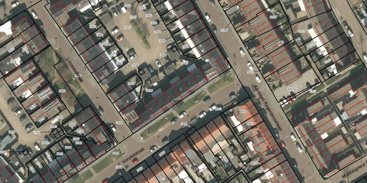 Vondelstraat 5 is gelegen op kadastraal perceel RMD00B7837. Deze kadastrale aanduiding is uniek en wordt gebruikt door het Kadaster om eigendomsrechten en andere zakelijke rechten vast te leggen. Het perceel maakt onderdeel uit van de kadastrale gemeente Roermond.