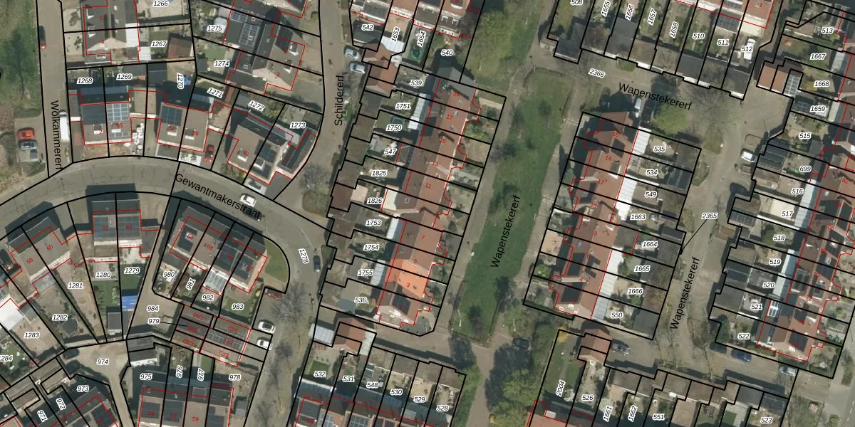 Gebruik de zoekbalk of klik op een perceel voor informatie over de adressen binnen dit perceel.