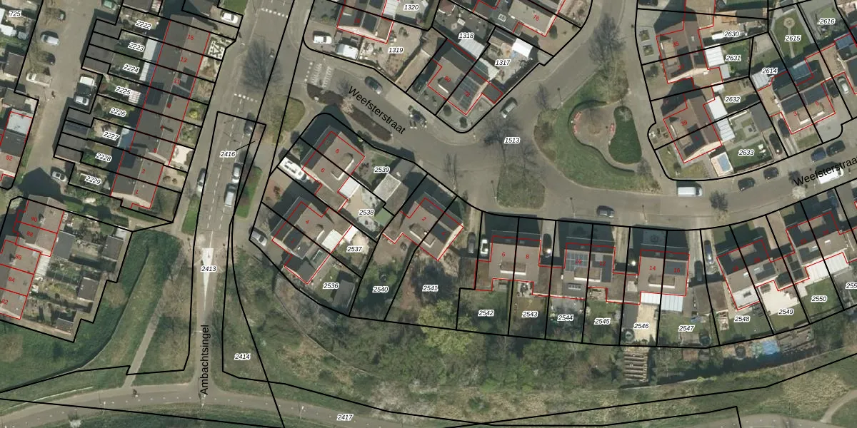 Weefsterstraat 2 is gelegen op kadastraal perceel RMD00H2540. Deze kadastrale aanduiding is uniek en wordt gebruikt door het Kadaster om eigendomsrechten en andere zakelijke rechten vast te leggen. Het perceel maakt onderdeel uit van de kadastrale gemeente Roermond.