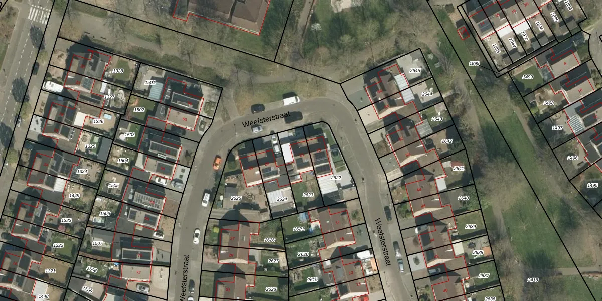 Weefsterstraat 21 is gelegen op kadastraal perceel RMD00H2623. Deze kadastrale aanduiding is uniek en wordt gebruikt door het Kadaster om eigendomsrechten en andere zakelijke rechten vast te leggen. Het perceel maakt onderdeel uit van de kadastrale gemeente Roermond.