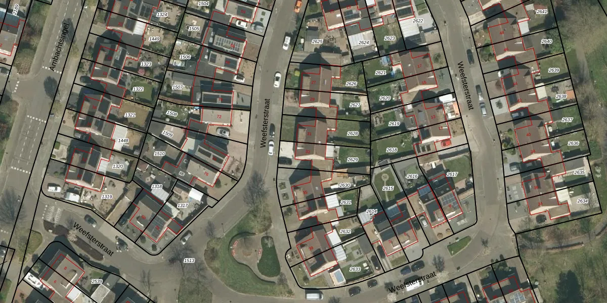 Het perceel waarop Weefsterstraat 33 staat heeft een oppervlakte van 265 m². Dit is een middelgroot perceel. De perceeloppervlakte wordt geregistreerd door het Kadaster. Gedetailleerde informatie over de maten van dit perceel kunt u vinden in het rapport Kadastrale kaart met maatvoering van Weefsterstraat 33.