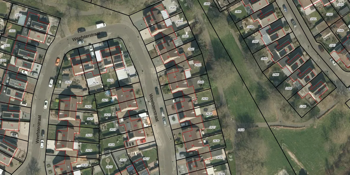 Weefsterstraat 46 is gelegen op kadastraal perceel RMD00H2640. Deze kadastrale aanduiding is uniek en wordt gebruikt door het Kadaster om eigendomsrechten en andere zakelijke rechten vast te leggen. Het perceel maakt onderdeel uit van de kadastrale gemeente Roermond.