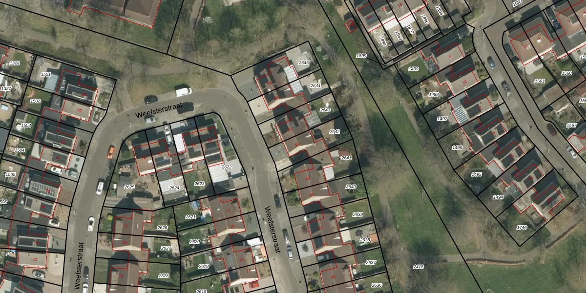 Weefsterstraat 50 is gelegen op kadastraal perceel RMD00H2642. Deze kadastrale aanduiding is uniek en wordt gebruikt door het Kadaster om eigendomsrechten en andere zakelijke rechten vast te leggen. Het perceel maakt onderdeel uit van de kadastrale gemeente Roermond.