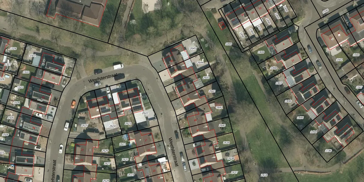 Weefsterstraat 52 is gelegen op kadastraal perceel RMD00H2643. Deze kadastrale aanduiding is uniek en wordt gebruikt door het Kadaster om eigendomsrechten en andere zakelijke rechten vast te leggen. Het perceel maakt onderdeel uit van de kadastrale gemeente Roermond.