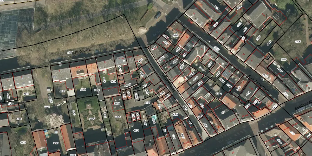 Wernerstraat 9 is gelegen op kadastraal perceel RMD00D4842. Deze kadastrale aanduiding is uniek en wordt gebruikt door het Kadaster om eigendomsrechten en andere zakelijke rechten vast te leggen. Het perceel maakt onderdeel uit van de kadastrale gemeente Roermond.