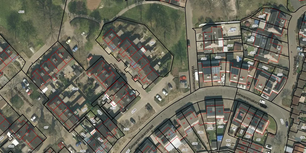 Het perceel waarop Wevererf 2 staat heeft een oppervlakte van 1310 m². Dit is een zeer groot perceel. De perceeloppervlakte wordt geregistreerd door het Kadaster. Gedetailleerde informatie over de maten van dit perceel kunt u vinden in het rapport Kadastrale kaart met maatvoering van Wevererf 2.
