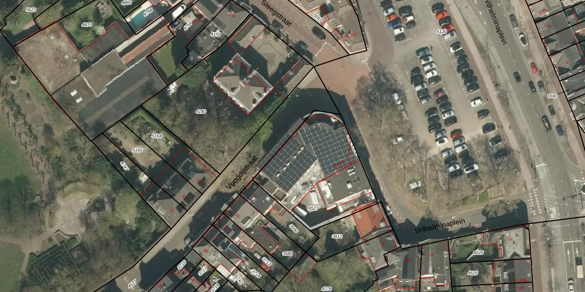 Het perceel waarop Wilhelminaplein 26-F staat heeft een oppervlakte van 1022 m². Dit is een zeer groot perceel. De perceeloppervlakte wordt geregistreerd door het Kadaster. Gedetailleerde informatie over de maten van dit perceel kunt u vinden in het rapport Kadastrale kaart met maatvoering van Wilhelminaplein 26-F.