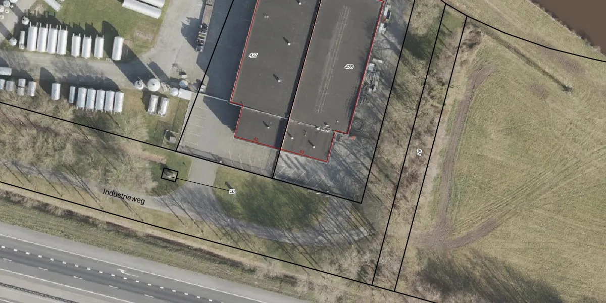 Het perceel waarop Industrieweg 43 staat heeft een oppervlakte van 2244 m². Dit is een zeer groot perceel. De perceeloppervlakte wordt geregistreerd door het Kadaster. Gedetailleerde informatie over de maten van dit perceel kunt u vinden in het rapport Kadastrale kaart met maatvoering van Industrieweg 43.